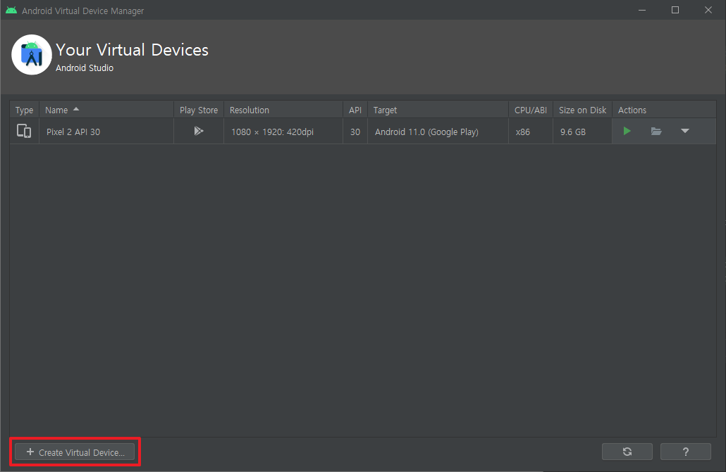 2. [+ Create Virtual Device]