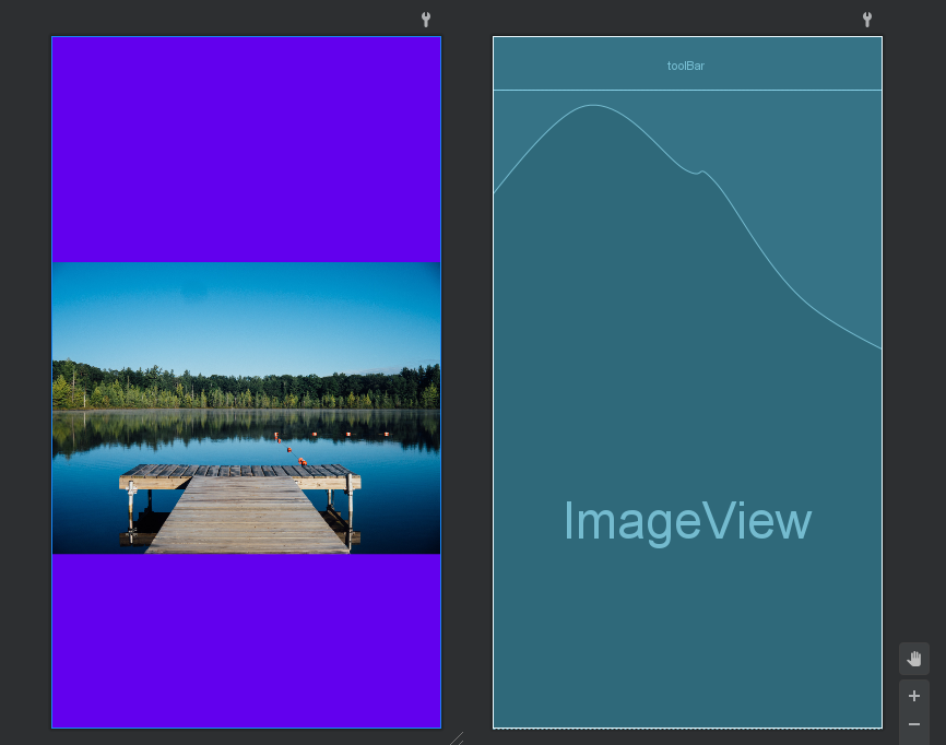 실제 레이아웃 화면을 보면 아래와 같이 ImageView 뷰 영역이 이미지 크기보다 크게 잡혀있어서 다른 뷰를 아래에 추가로 배치할 수가 없다.