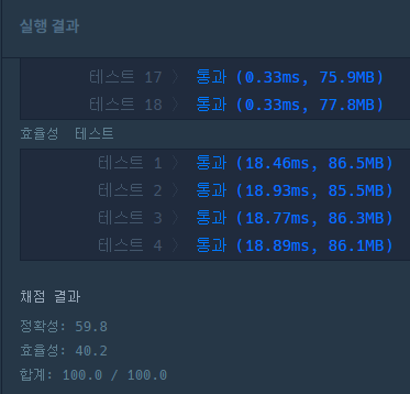 위 코드는 이전 행에서 밟은 열이 아니면서 가장 점수가 큰 열을 차례로 밟은 뒤, 마지막에 최종 점수 합을 반환하는 방식이다. 코드 실행 시에는 테스트에 통과하지만 실제 실행결과는 전부 실패가 뜬다.