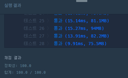 문자열 압축 과정을 살펴보기 위해 '일정한 단위로 잘린 문자열', '압축 결과 문자열'을 연산 도중에 출력해보았다.
