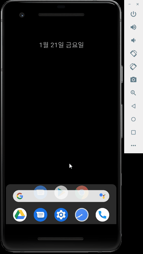안드로이드 에뮬레이터(AVD)로 실습도중 어느순간부터 상태바(Status Bar)가 표시되지 않아 배터리, 시간, 푸시 알림 등을 확인할 수 없게되었다. AVD 자체를 껐다 켜봐도 소용없는 상황.