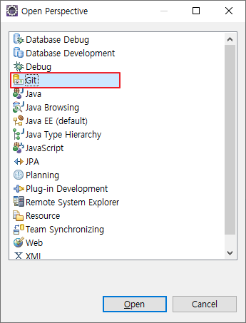 4. 'Git'을 선택한 뒤 'Open' 클릭