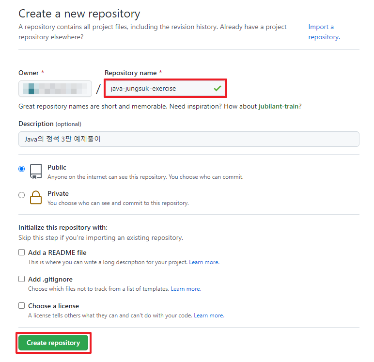 1. Github에 소스코드를 저장할 새 리포지토리 생성