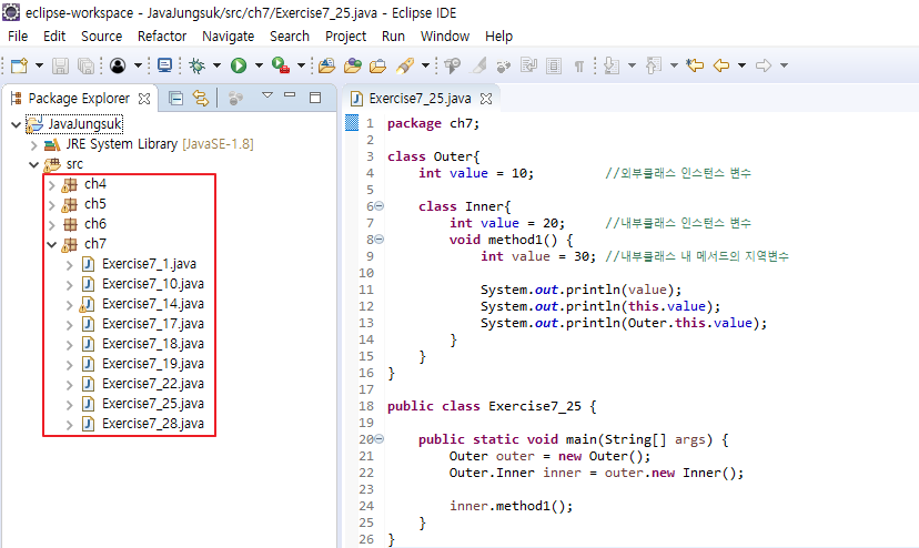 (JavaJungsuck 프로젝트의 패키지(ch3~ch7)에 포함된 소스코드를 전체 github에 업로드하는 것이 목표)