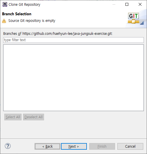 7. 새로운 Repository라서 선택할 Branch가 없음
