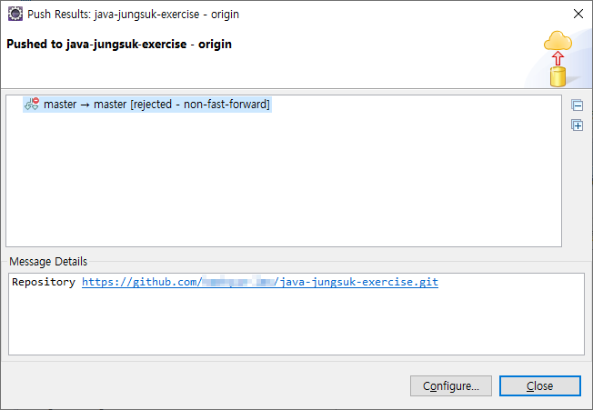[Eclipse] Eclipse에서 Github Repository로 push할 때 reject 오류 해결법 본문