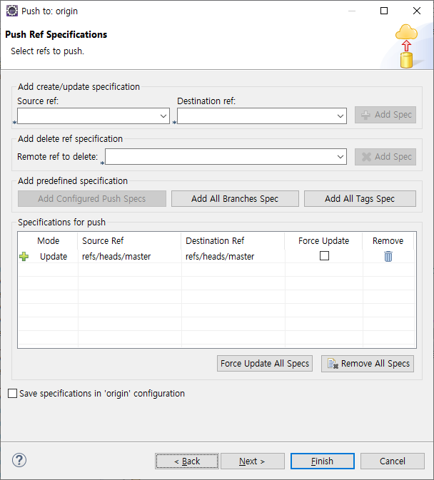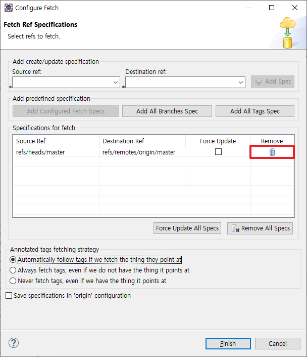 5. 기존에 존재하는 Ref mappings를 제거한 뒤, [Add Spec] 을 클릭해 새로 추가