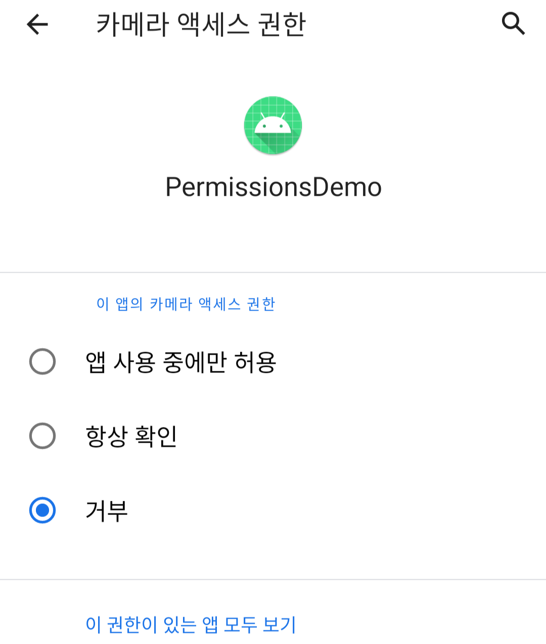 퍼미션 허용 요청 메시지창에 대한 사용자의 반응인 퍼미션 허용 요청 결과를 확인한다.