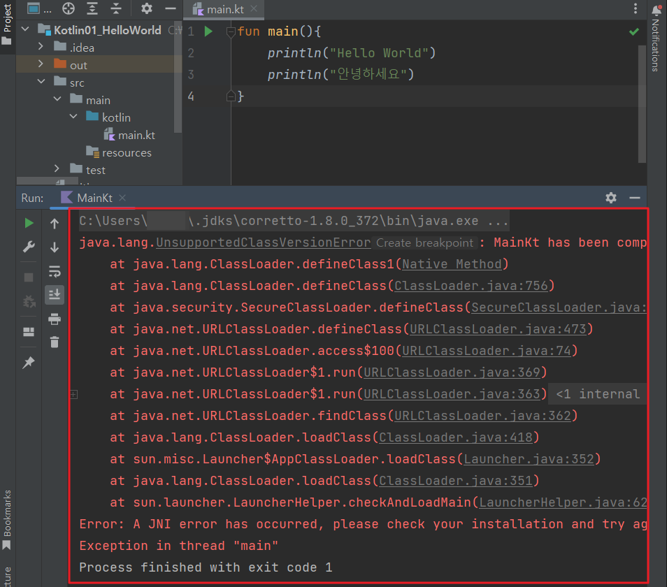 [Kotlin] UnsupportedClassVersionError / A JNI error has occurred 에러 해결 방법 본문