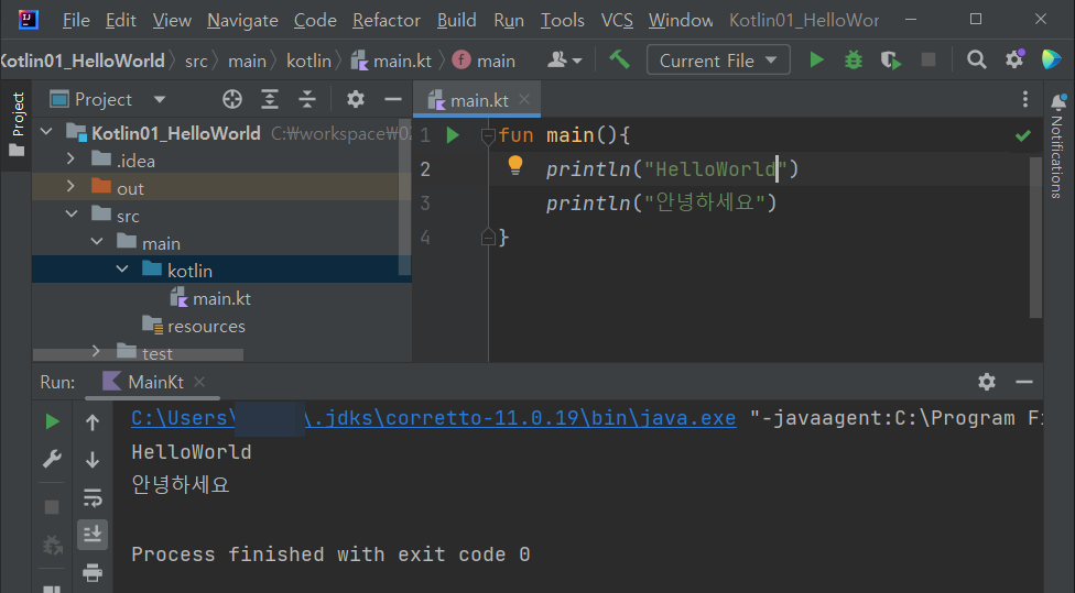 3. 다시 같은 코드를 작성하고 실행(Run) 해보면 제대로 실행되는 걸 볼 수 있다.