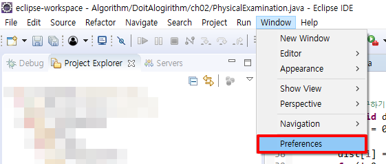 2. [Windows] > [Preferences] > [General > Appearance > Colors and Fonts] > 'Basic' > 'Text Font' 선택 > [Edit]