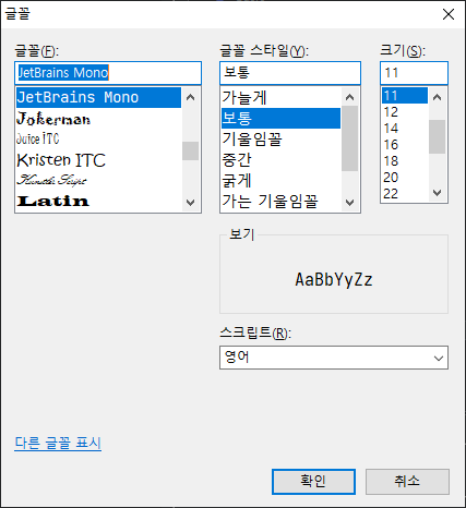 ★ JetBrains Mono (진짜 너무 좋다... 폰트 이걸로 바꾸고 광명찾음ㅠ 영문도 한글도 선명하게 잘 보임)