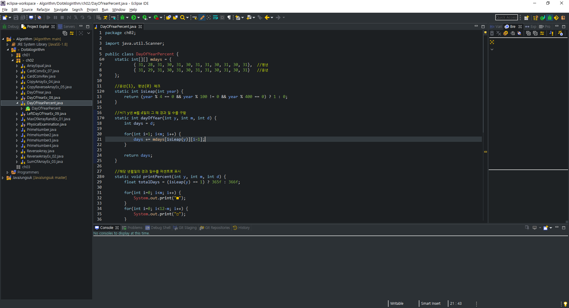 | [Java] Java 예제 풀이 (1) (0) | 2021.10.18 |