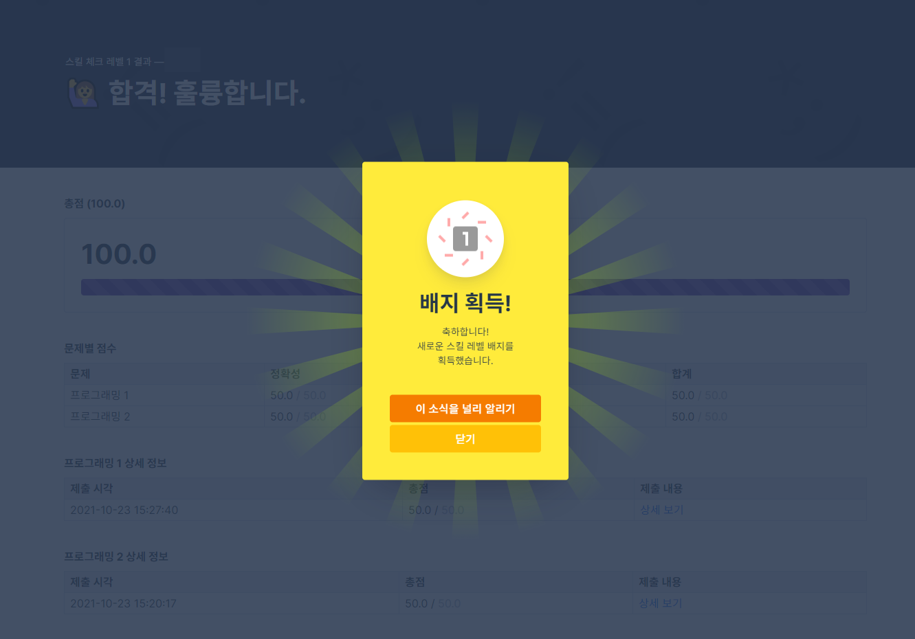 매일 1번씩 Level1에 도전했고, 3일째에 합격을 맞이했다.