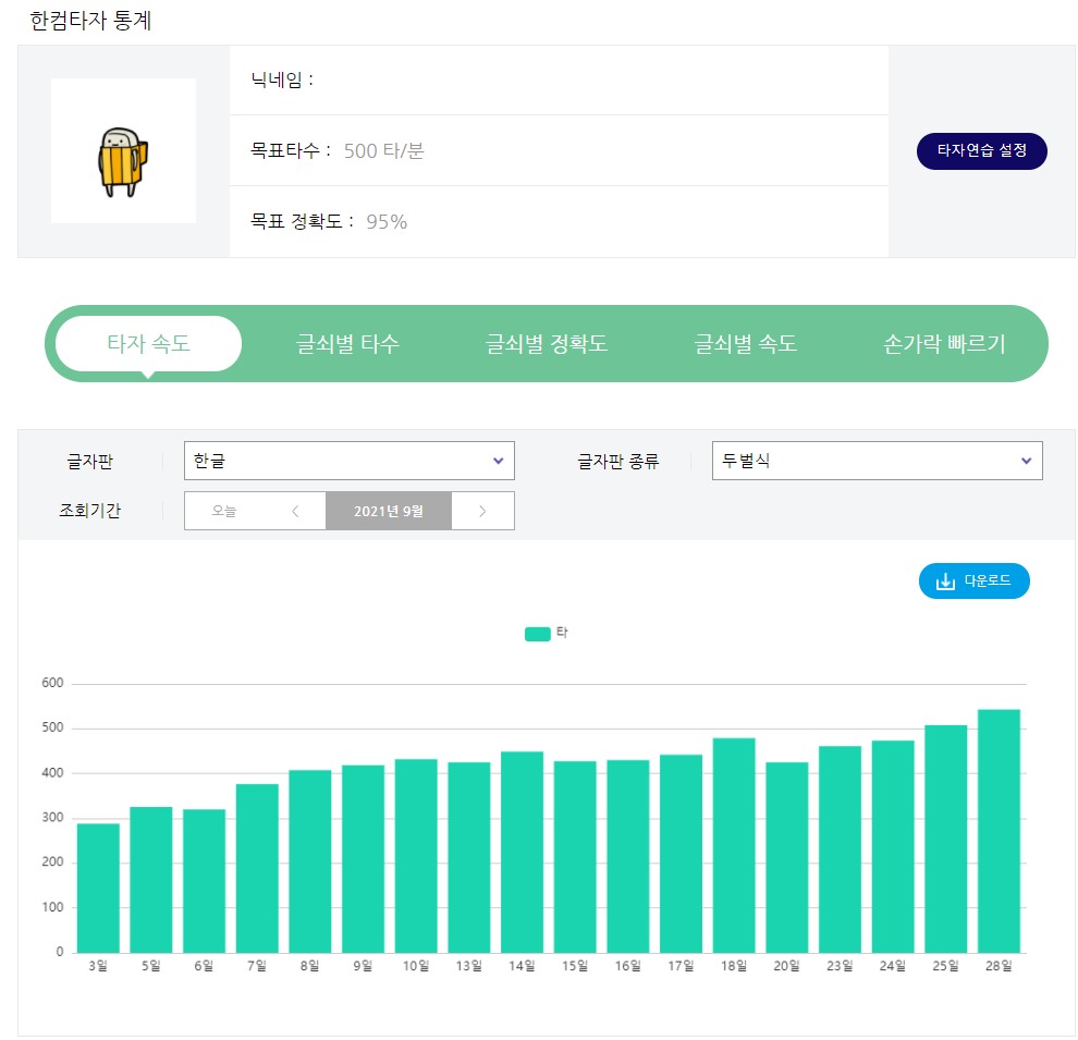 그러나 영타는 원래 실력이 너무 낮았어서 그런지, 속도도 정확도도 쉽게 오르질 않더라ㅠ