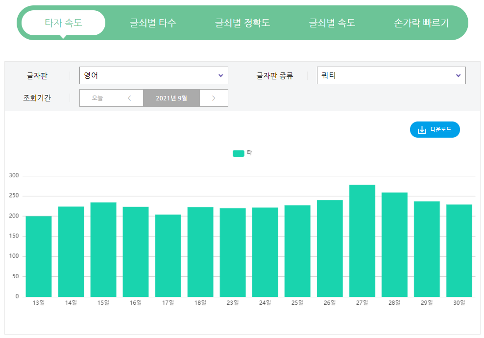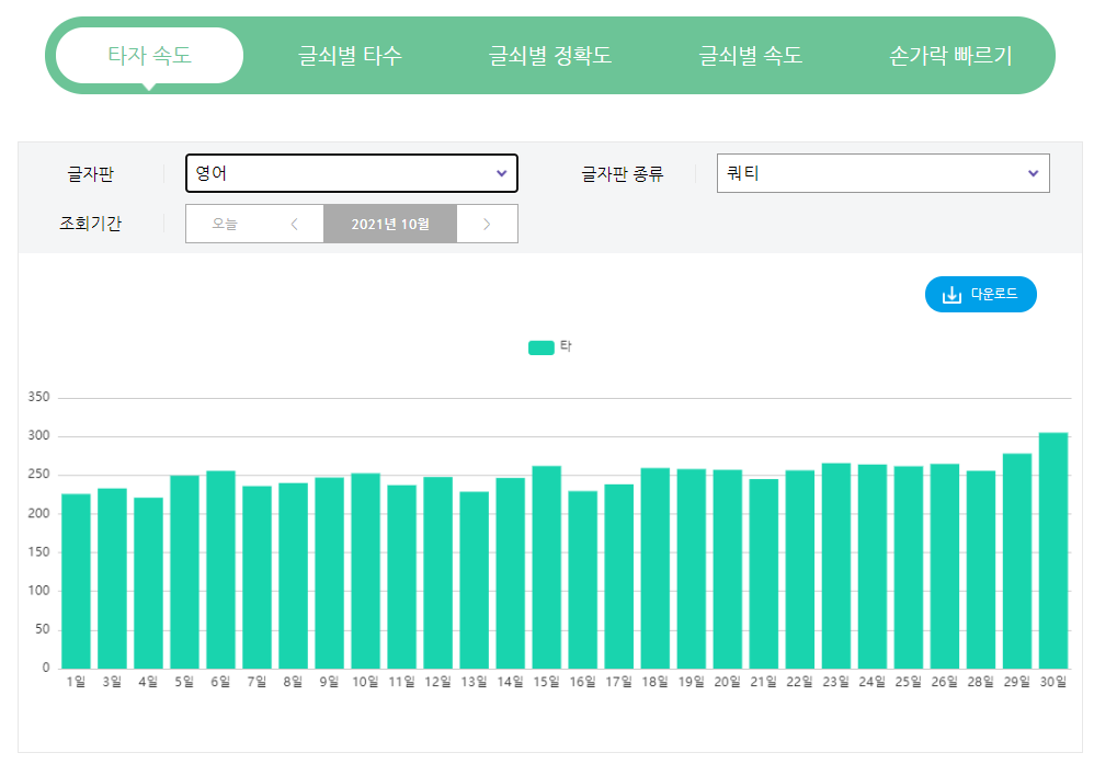 그래도 매일 타자검정을 2회씩 꾸준히 한 덕에 목표로 하던 300타에 도달하긴 했다. 💨