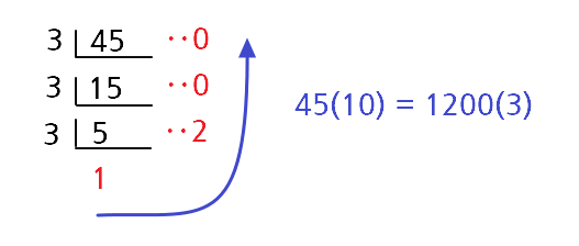 몫이 n보다 작아질 때까지 n으로 나누는 걸 반복. 매 나눗셈에서 산출된 나머지 값을 역순으로 이어붙인 것이 n진수 값