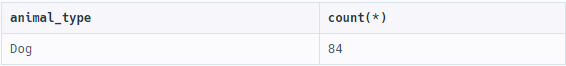 WHERE animal_type IN ('Cat', 'Dog'); --WHERE절은 GROUP BY보다 위에 있어야 함