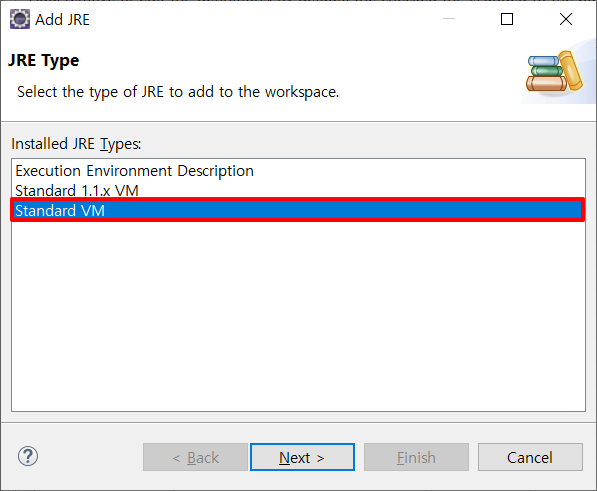 4. [Directory..]에서 로컬에 위치한 Java설치 경로를 선택하면 관련 정보들이 자동으로 반영된다. > [Finish]