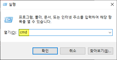 1. 실행 창[Ctrl+R]에서 "cmd"를 입력하거나, "명령 프롬프트" 프로그램 실행