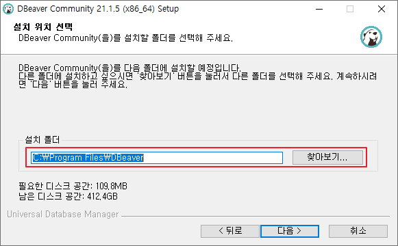 기본 경로 > C:\Program Files\DBeaver