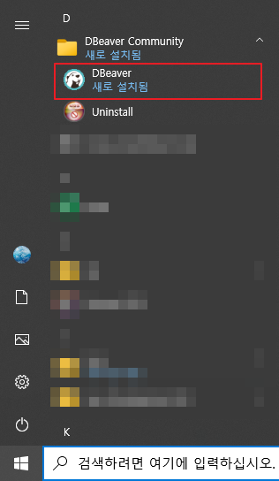 12. 시작 메뉴에서 DBeaver Community가 설치된 것을 확인할 수 있다.