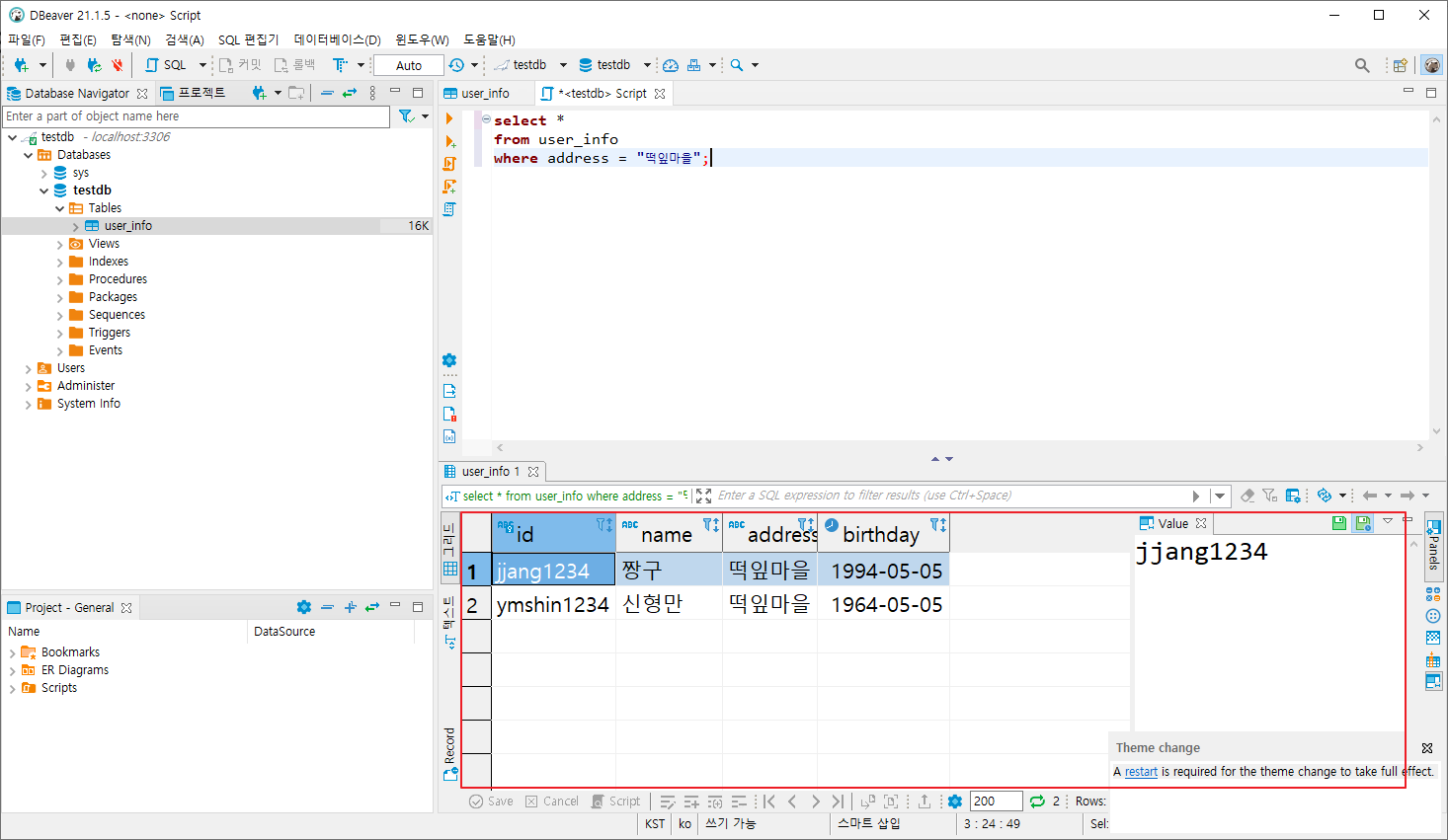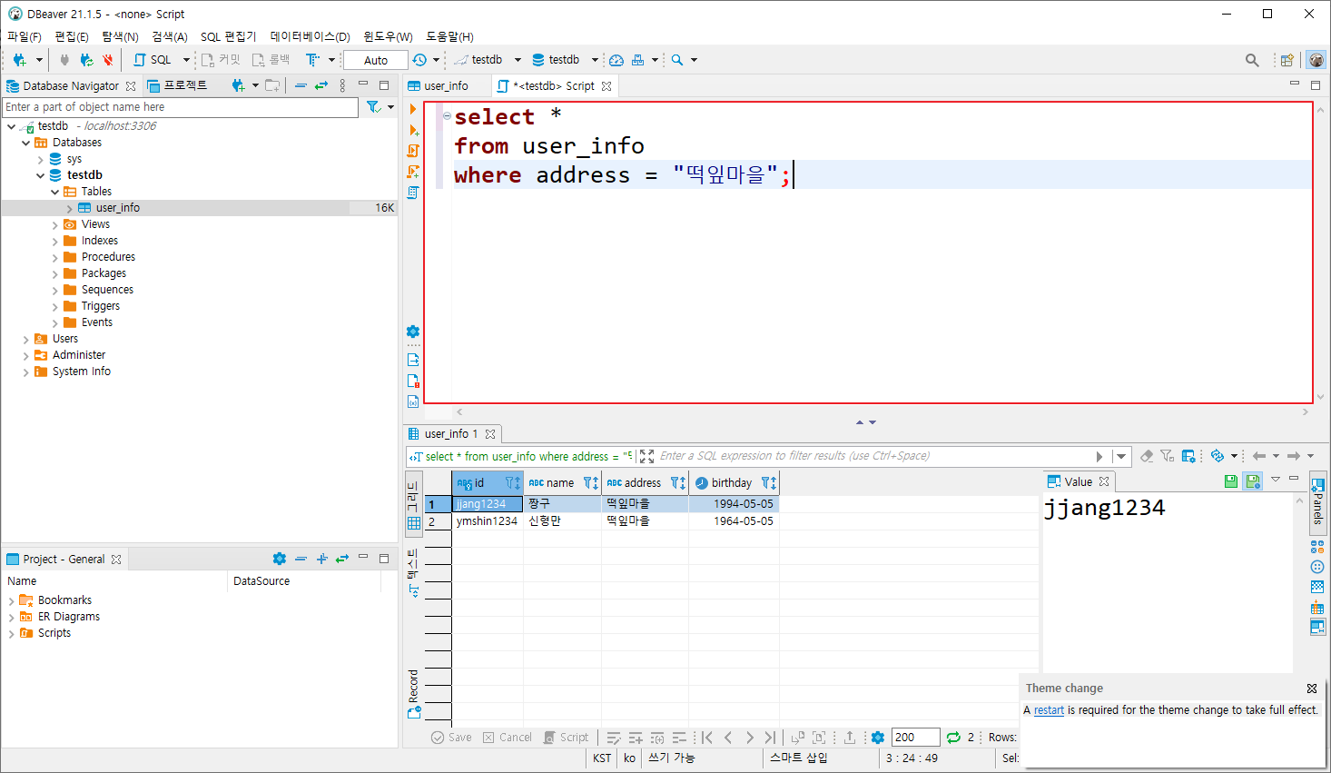 10. 이런식으로 DBeaver만을 실행해서 MariaDB의 데이터를 조회, 변경할 수 있다.